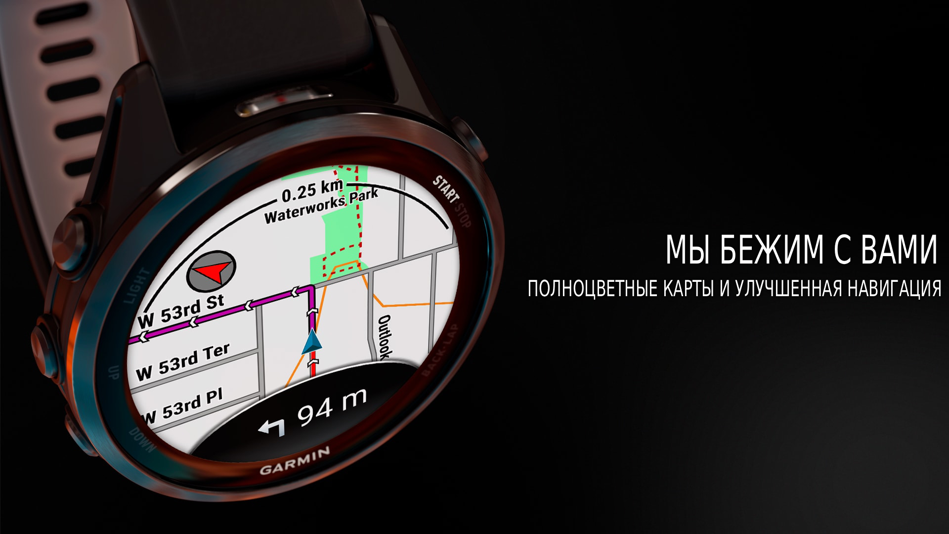 Будь то бег по городским улицам или езда по густо заросшим тропам, умные часы Forerunner 970 обеспечивают полноцветные встроенные карты — теперь еще более динамичные, интуитивно понятные и простые в использовании.